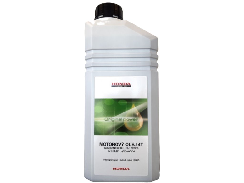 Motorový olej Honda, částečně syntetický, viskózní třídy SAE 10W-30, kvalitativní specifikace API SL/CF, balení 1,0L. Tento moderní, univerzální motorový olej, je určen k mazání čtyřtaktních zážehových (benzínových) vysokootáčkových motorů Honda, pracujících jak v zahradní, zemědělské a komunální technice (motorové sekačky, zahradní traktory, křovinořezy, ridery, rotavátory, motorová čerpadla, sněhové frézy), tak i v malé stavební technice (elektrocentrály, motorová čerpadla, vibrační technika, řezací technika, osvětlovací technika a další stroje, poháněné motorem Honda). Vysoce kvalitní olej Honda svým složením splňuje kvalitativní požadavky pro použití ve všech 4-taktních zážehových motorech Honda používaných ve strojích Honda a zabraňuje usazování karbonu a prodlužuje životnost motoru. Oblast použití tohoto víceoblastního oleje plně odpovídá běžným klimatickým podmínkám, carakteristickým pro oblast střední Evropy po celý rok. Zaručuje vynikající mazací schopnosti jak v letním, tak i zimním období a zaručuje bezproblémové starty motorů i při nízkých teplotách. Používejte v souladu s určením výrobku.