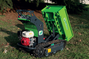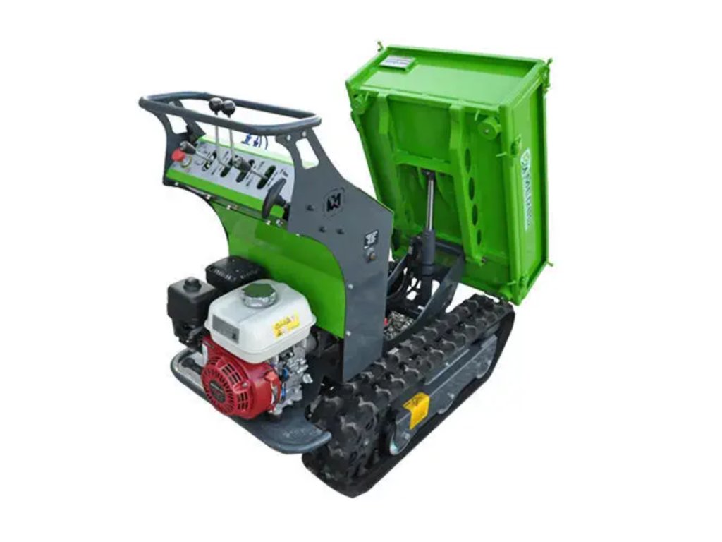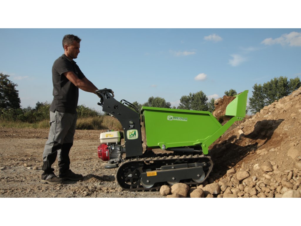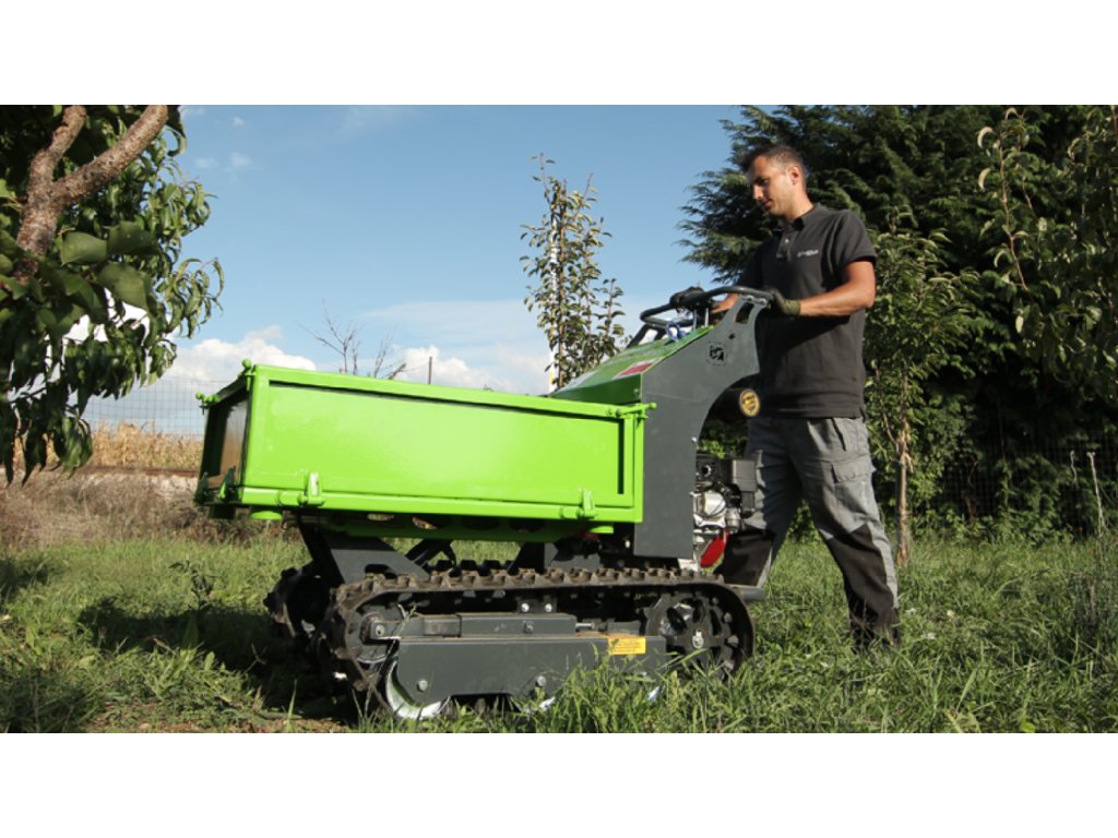 Benzínový jednoválcový motor Honda GX200 o výkonu 5 HP, vzduchem chlazený, zajišťuje spolehlivý a stabilní provoz. Robustní korba s pevnou podlahou a sklopnými bočnicemi usnadňuje nakládku i vykládku. Hydraulické motory jsou vybaveny přírubovým overcenter ventilem, který poskytuje vyšší kontrolu rychlosti a maximální bezpečnost při jízdě do kopce i z kopce.