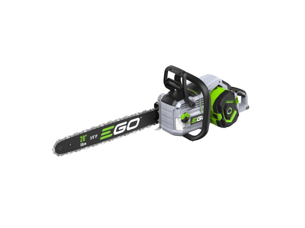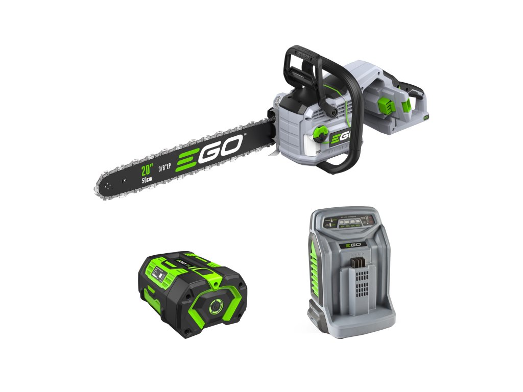 Řetězová pila CS2000E v sadě - Největší z nabídky EGO, řetězová pila s lištou 50cm a řeznou rychlostí 25,0 m/s. Pilový řetěz s dělením článků 3/8" a šířkou vodící drážky 1,3mm svědší o vysokých ambicích pily. Svým výkonem se zcela vyrovná silnějším benzínovým pilám a jedná se o ideální stroj pro řezání a dělení dřeva do ∅ 40cm. Perfektně poslouží třeba ve vybavení obcí, dobrovolných hasičů, silničářů, ale i profesionálním tesařům, sadařům, komunálním službám nebo náročným majitelům zalesněných pozemků.