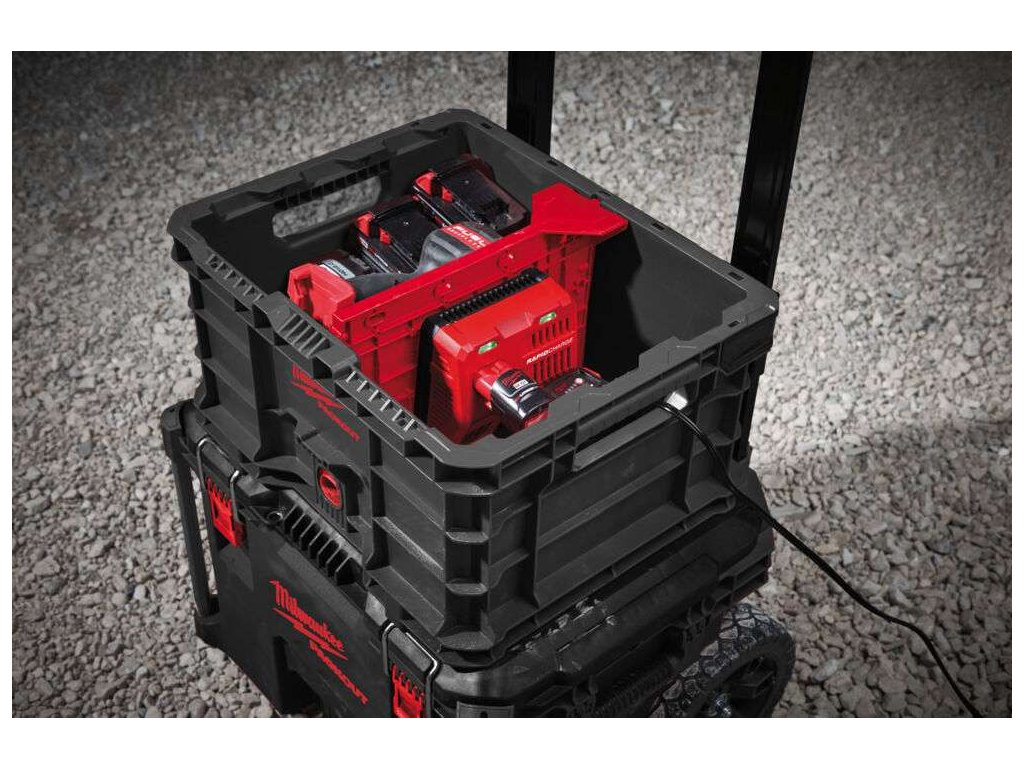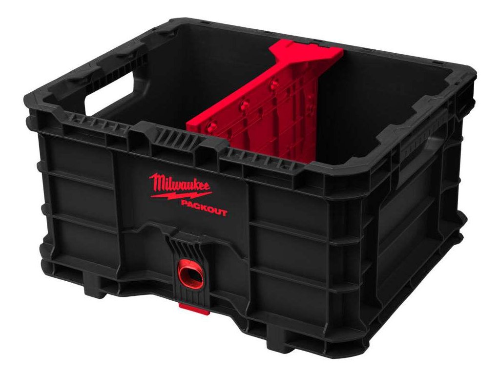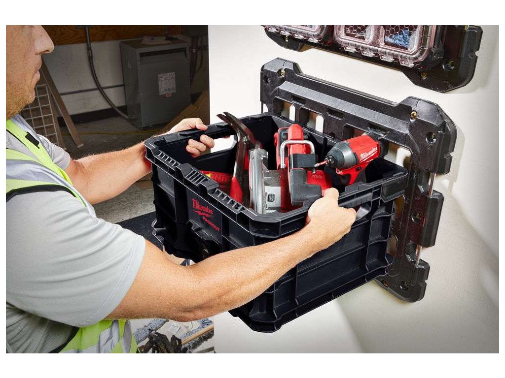 Přepravka Milwaukee PACKOUT™ nabízí univerzální možnosti stohování, jak vertikální, tak horizontální, s nosností až 22 kg. Díky své velké úložné kapacitě je ideální pro uložení všech typů nářadí.