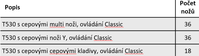 - T530 s cepovými multi noži, ovládání Classic - standardní výbava