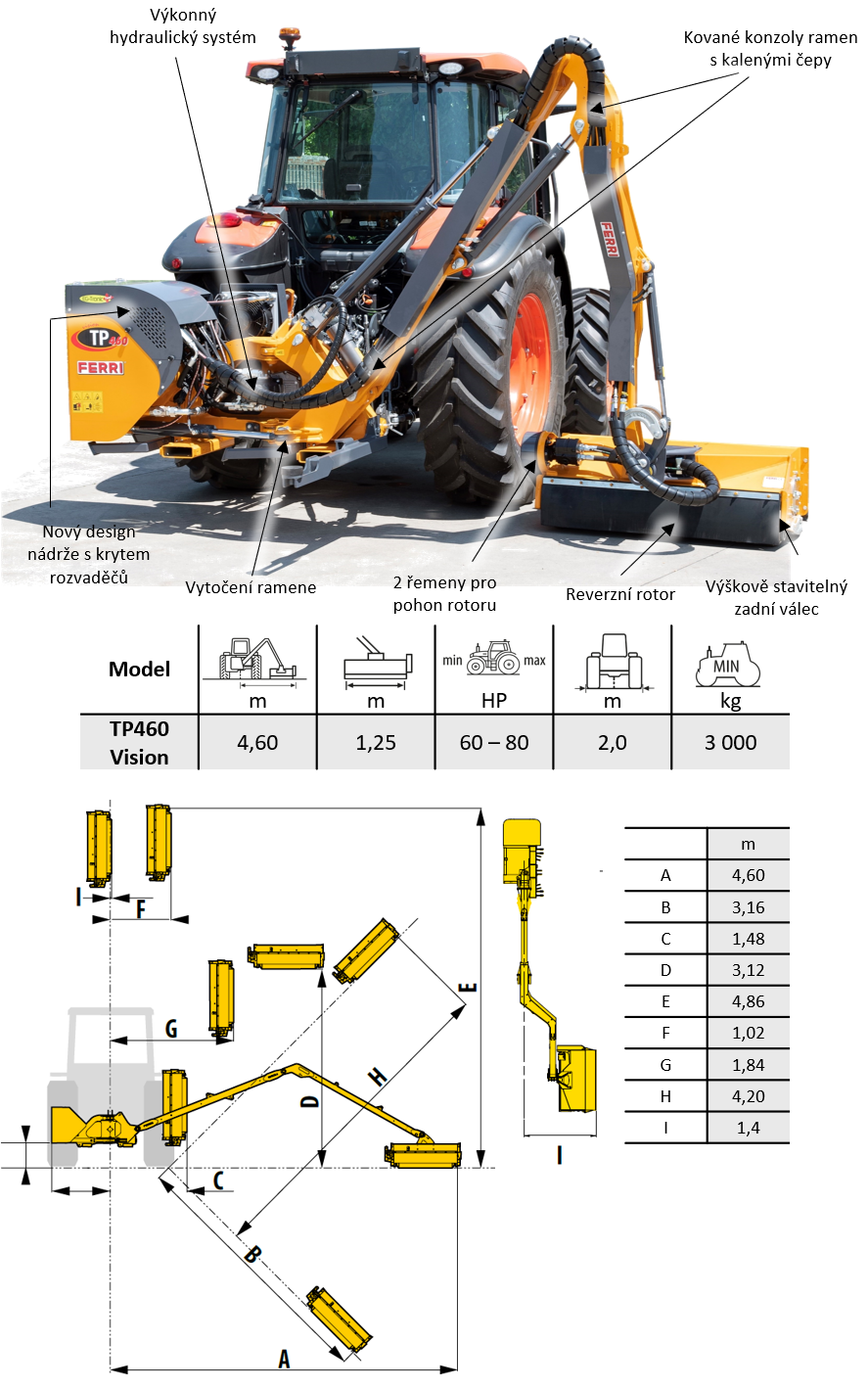 Příkopové rameno Ferri TP460 Vision s předsazenou hlavou
