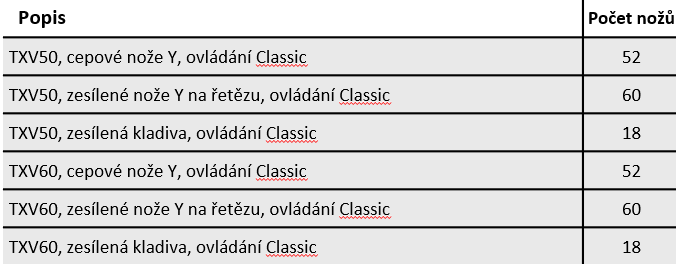 - TXV50, cepové nože Y, ovládání Classic - 1.225€