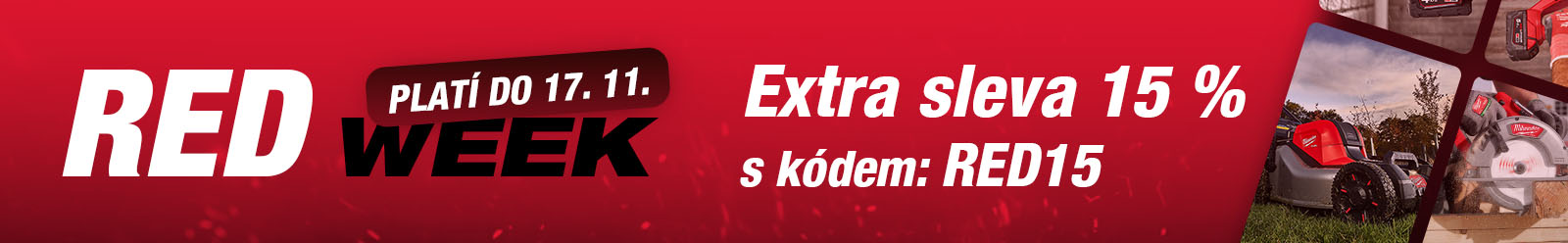 Akce RED WEEK Platí veškeré produkty značky MILWAUKEE. Slevový kód zadejte v košíku a cena se automaticky sníží o 15 %.