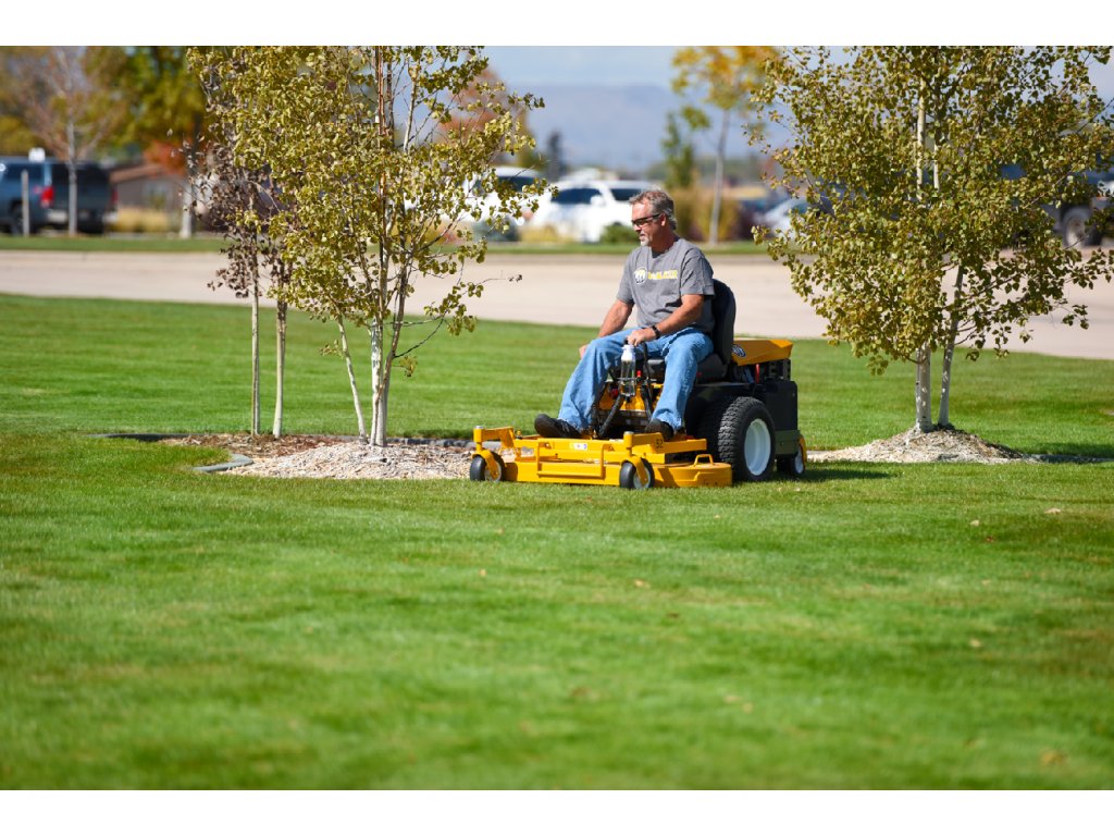 Walker T27i s hlavou DC52, rozměry: Š 134,6 cm, D 241,3 cm versus stroj Z Master s lištou 52” rozměry: Š 172,7 cm, délka 259 cm.
