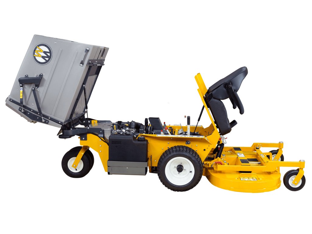 Design umožňuje snadnou údržbu – sklopné panely, jednoduchý přístup k GHS dmychadlu díky swing-away jackshaft konstrukci, méně řemenů, méně dílů a tím nižší servisní náročnost. Díky větším průtokovým komponentám a zefektivněné vnitřní konstrukci je sběr trávy rychlejší, tichý a komfortní.