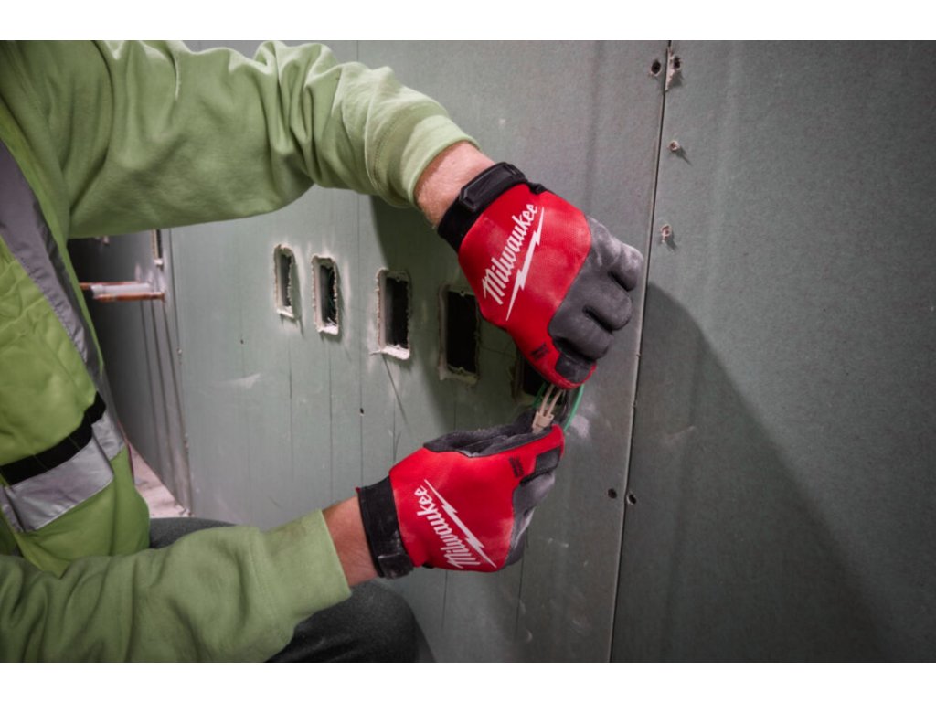 Lehké, pohodlné a vysoce prodyšné pracovní rukavice Milwaukee PERFORMANCE vhodné pro každodenní práci, velikost L, ovládání dotykových zařízení bez sundání rukavic, zapínání na suchý zip.