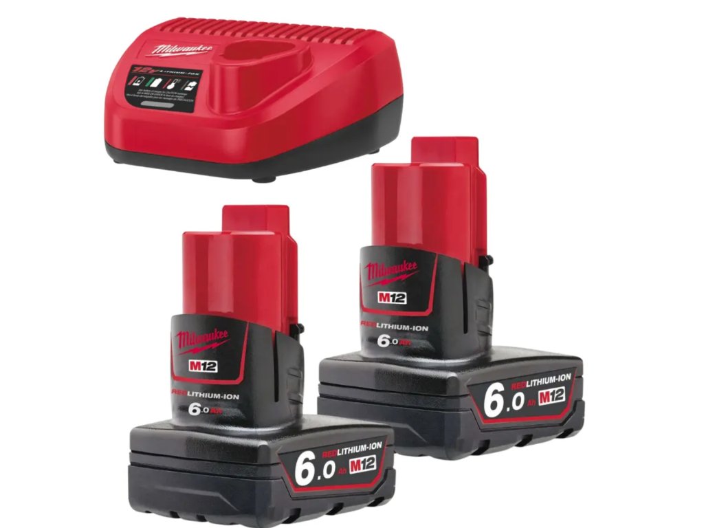 Aku nabíjecí sada Milwaukee M12 NRG-602 s akumulátory a nabíječkou. Sada obsahuje: 2x Akumulátor M12 B6 (12 V, 6,0 Ah) + Aku nabíječka M12 C12 C.