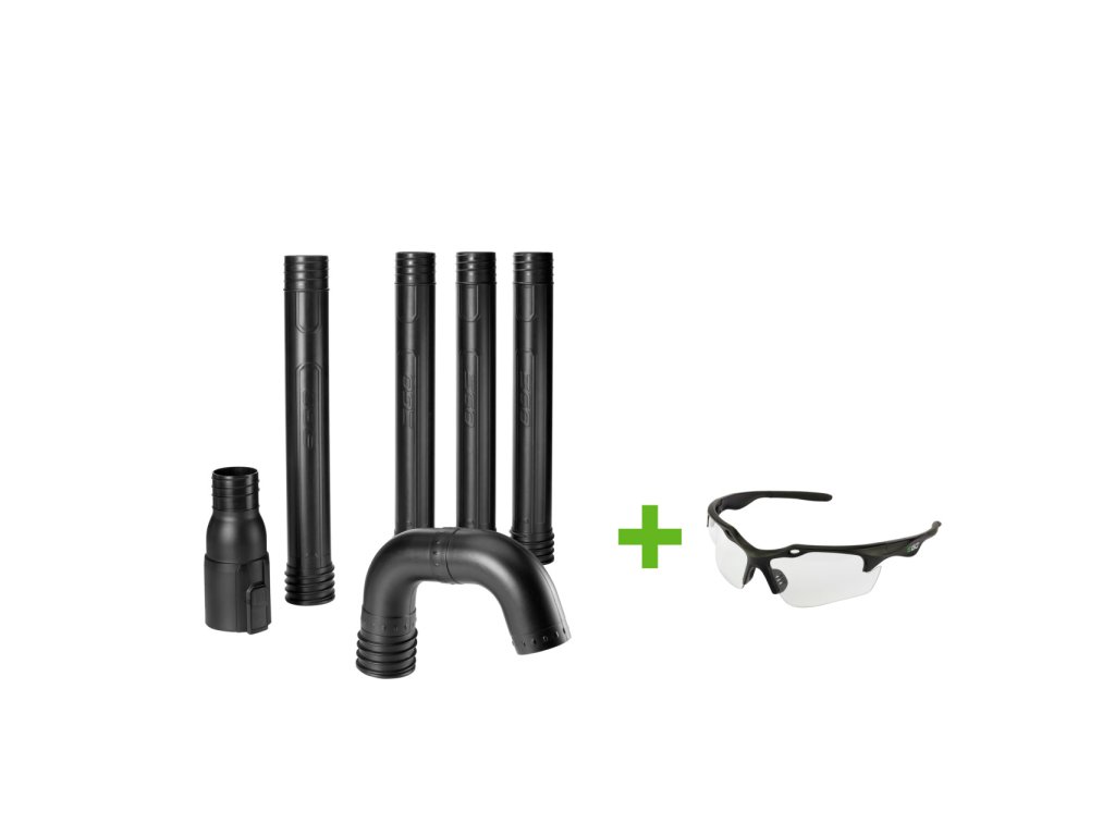 Sada nástavců na čištění okapových žlabů slouží k vyfukování nečistot z okapových žlabů budov při bezpečném postoji na zemi. Pomocí několika prodlužovacích nástavců a zahnutého zakončení snadno nasměrujete tok vzduchu do okapového žlabu a proud vzduchu vyfoukne případné nečistoty. Celková délka cca. 250 centimetrů. Možno použít pro modely LB5300E, LB5800E a LB7650E.