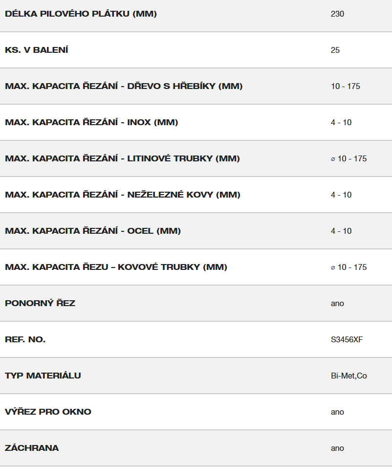| Délka pilového plátku (mm): | 230 |