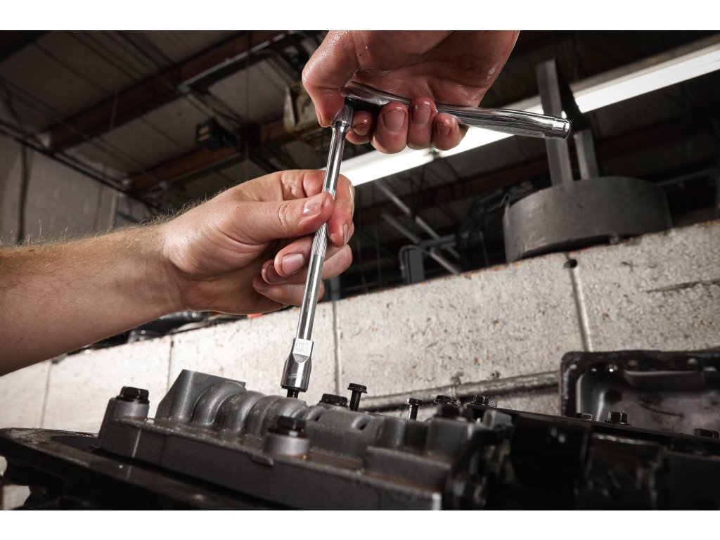 - Díky výkyvné funkci je zajištěn dodatečný přístup do stísněných prostor a po úplném zasunutí lze použít i jako standardní nástavec.