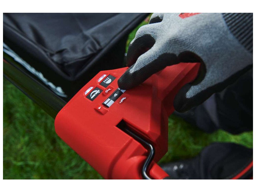 Kompaktní konstrukce těla a nastavitelný mechanismus pojezdu s 5 úrovněmi rychlosti umožňují snadnou manipulaci i v úzkých prostorech, zatímco páčka pro aktivní regulaci rychlosti a přední světlomet zvyšují kontrolu a přesnost. Sekačka disponuje 7 polohovým jednobodovým nastavením výšky sečení v rozmezí 2,5–10 cm, což umožňuje přizpůsobit se různým druhům trávy a podmínkám. Díky skládací rukojeti a možnosti skladování na výšku je přeprava a úložiště jednoduché a pohodlné.