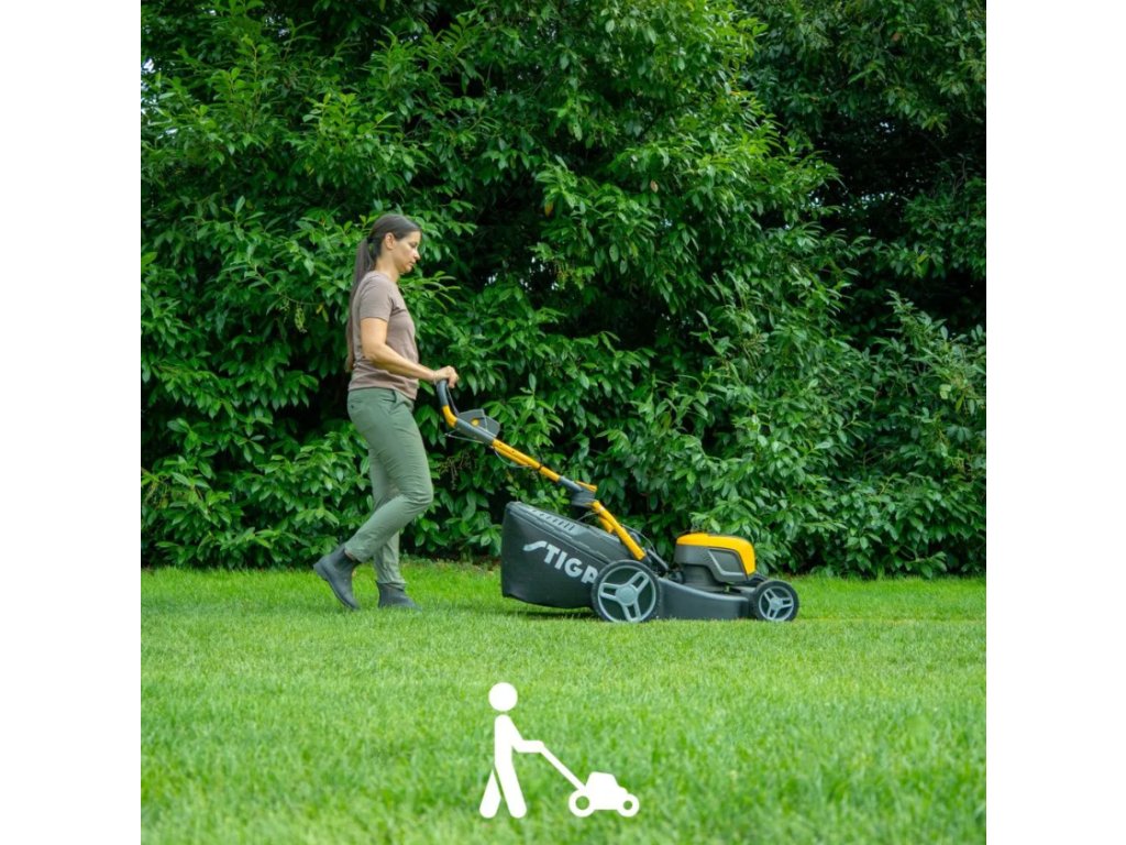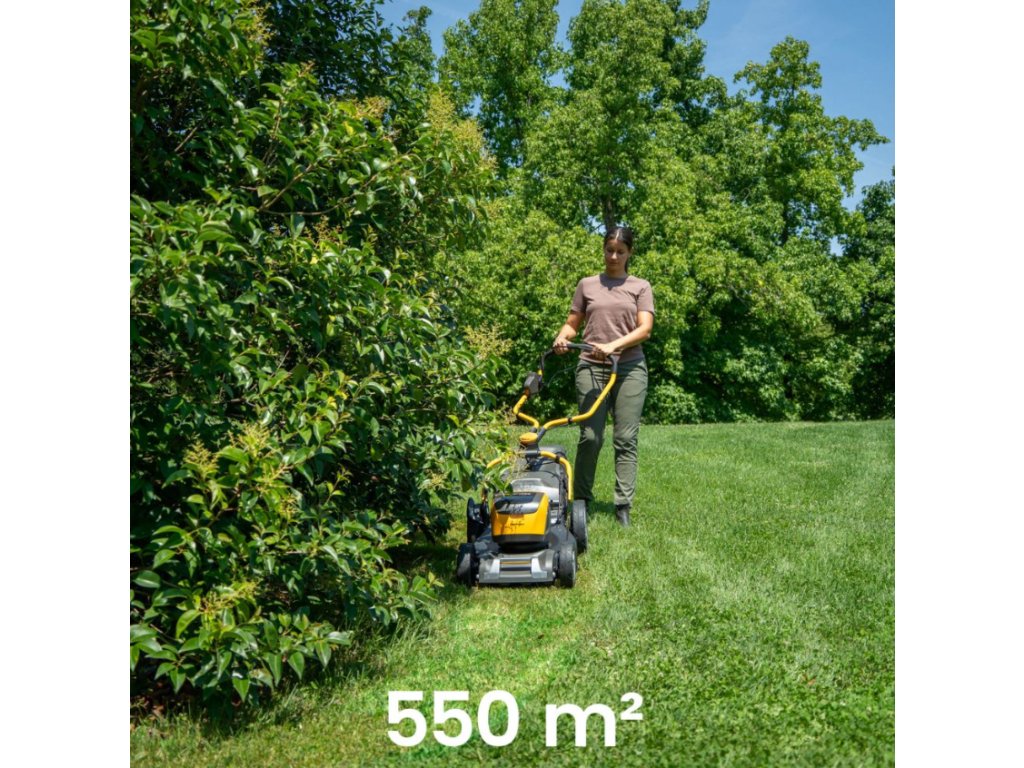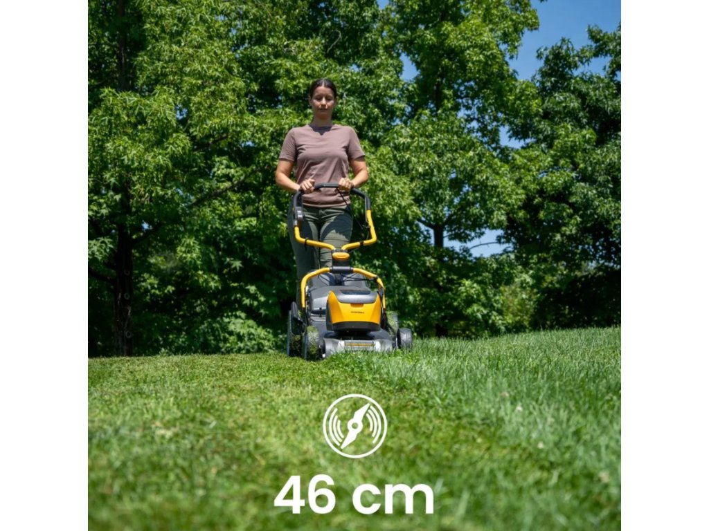 Srdcem stroje je bezuhlíkový motor o výkonu 1,3 kW, který poskytuje vyšší účinnost, delší životnost a nižší nároky na údržbu. Robustní 46cm ocelové žací ústrojí zajišťuje efektivní a přesné sečení, přičemž výšku střihu lze jednoduše nastavit do šesti různých poloh podle aktuálních podmínek trávníku.