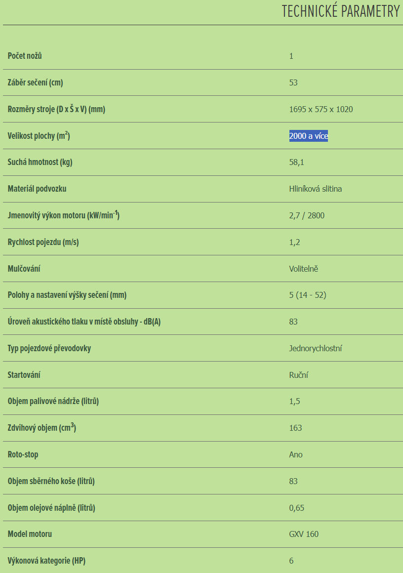 | Polohy výšky sečení: | 5 (14 - 52) |