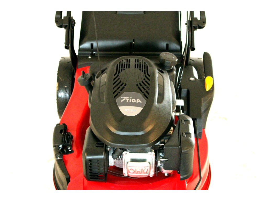 Pohodlné ovládání zajišťují velká kola s kuličkovými ložisky a ergonomická rukojeť s měkčeným madlem. Prostorný 70litrový sběrný koš s indikátorem naplnění pojme dostatek posečené trávy a minimalizuje nutnost častého vysypávání. Plynulý rozjezd zajišťuje moderní EVO převodovka, která přispívá k komfortní práci při sečení.