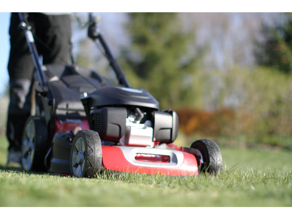 - benzínová rotační sekačka s pojezdem