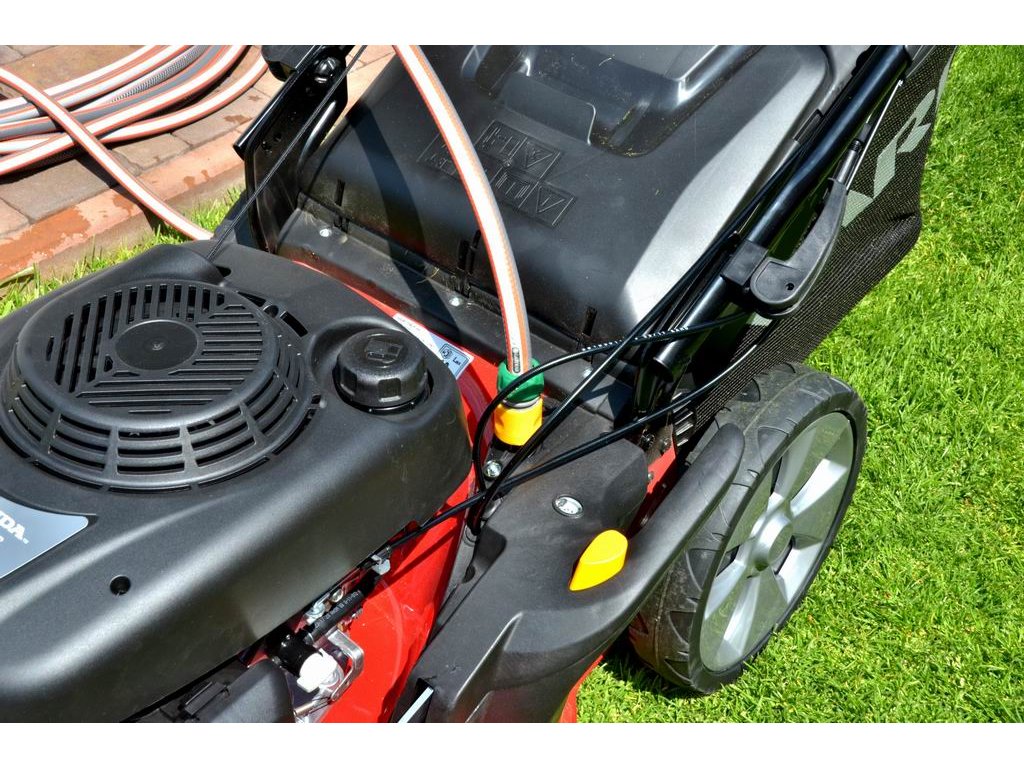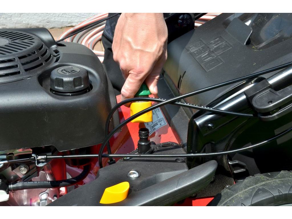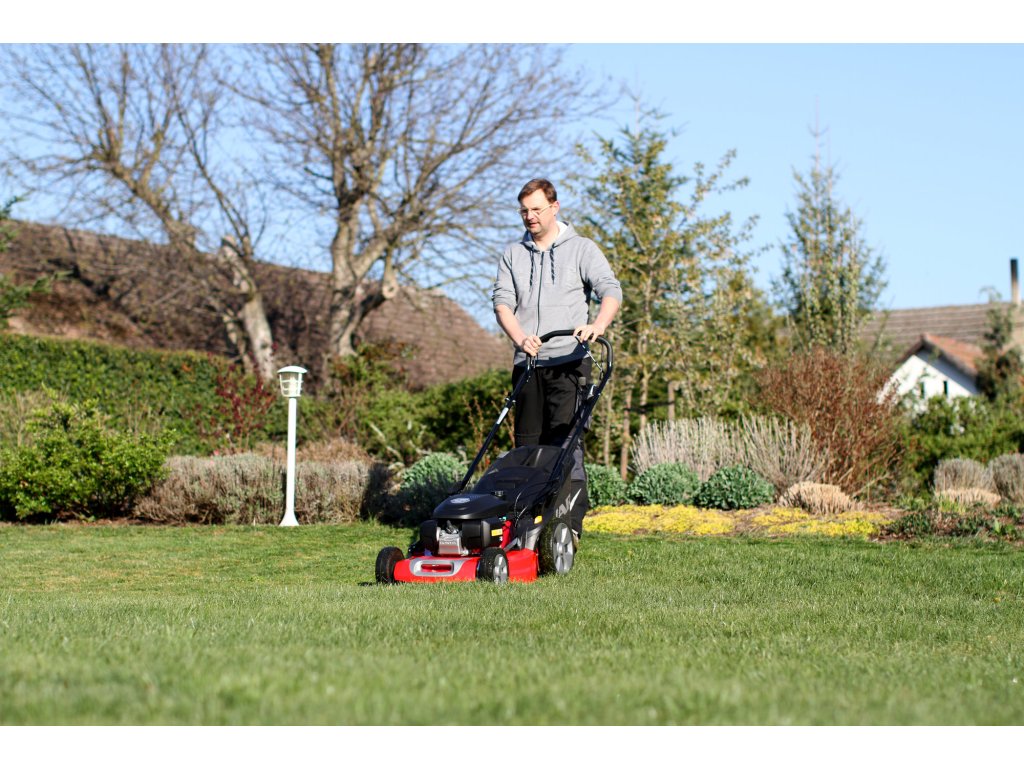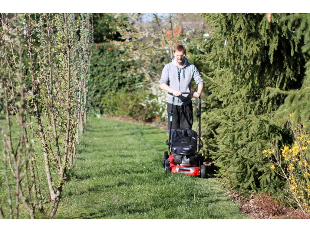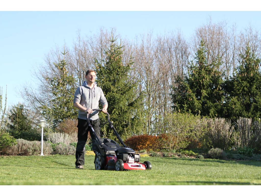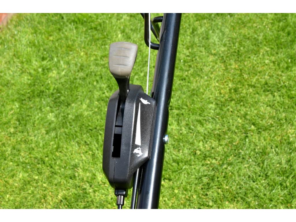 Velkou předností tohoto modelu je variátorová převodovka s plynulou regulací rychlosti pojezdu (2,5–4,4 km/h). Díky tomu si můžete rychlost přizpůsobit výšce trávy i vlastnímu tempu chůze, což výrazně zvyšuje komfort při sečení větších ploch.