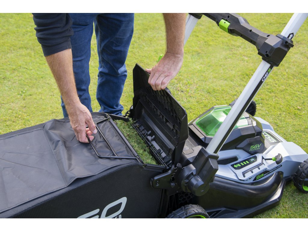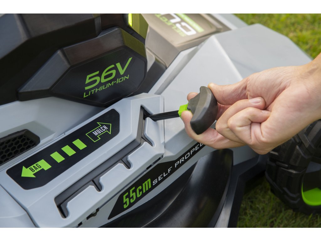 Dva sekací nože systému "Select Cut ™" dokonale naplní sběrný koš o objemu 85L. Pro případ mulčování je podvozek opatřen integrovaným mulčovacím systémem. Pro případ výhozu trávy do strany, slouží deflector výhozu, který se nasazuje namísto sběrného koše. Textilní sběrný box lze snadno demontovat a při použití speciálně konstruovaného deflektoru se stává se sekačky se sběrem sekačka s výhozem do strany. Funguje to fantasticky.