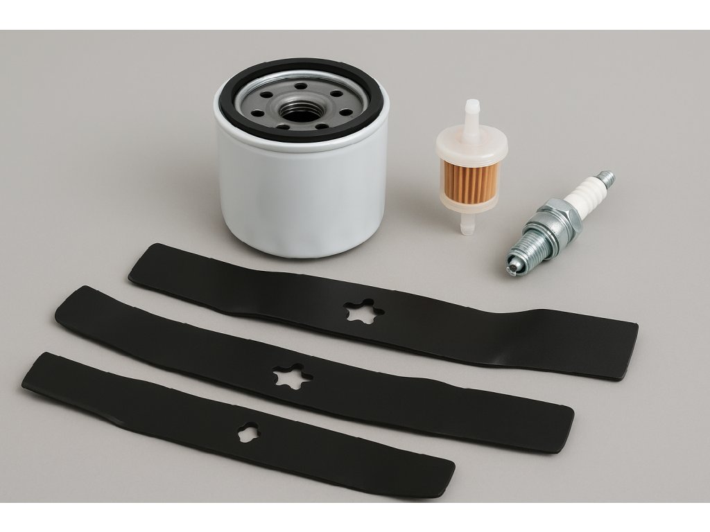 Sada obsahuje vše potřebné pro rychlý servis – od filtrů a svíček až po kompletní sadu nožů pro optimální výkon.