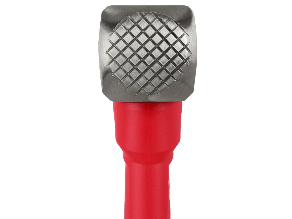 - Univerzálnost dvou čelních ploch: Frézovaná čelní plocha dodatečně zlepšuje úchop a minimalizuje nežádoucí pohyb při tlučení na sekáč nebo při zatloukání velkých hřebíků, hladká čelní plocha zabraňuje poškození materiálu.