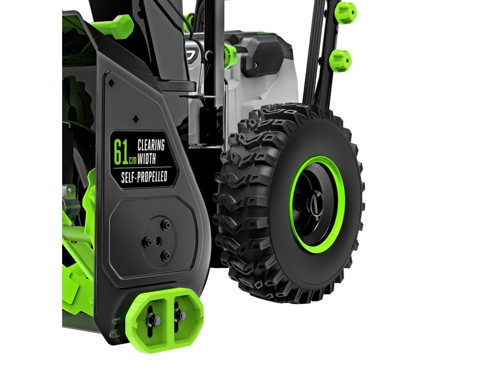 Jediná akumulátorová dvoustupňová sněhová fréza na trhu. EGO SNT2400E je první sněhovou frézou na trhu, u které úklid sněhu zajišťuje dvoustupňový frézovací mechanismus. Pojezd kolové frézy je zajištěn variabilním elektropojezdem. Frézovací mechanismus, rovněž s variabilním dávkováním výkonu, si poradí i s vrstvou staršího nebo těžšího, mokrého sněhu. Stroj je dodáván bez baterií a nabíječek.