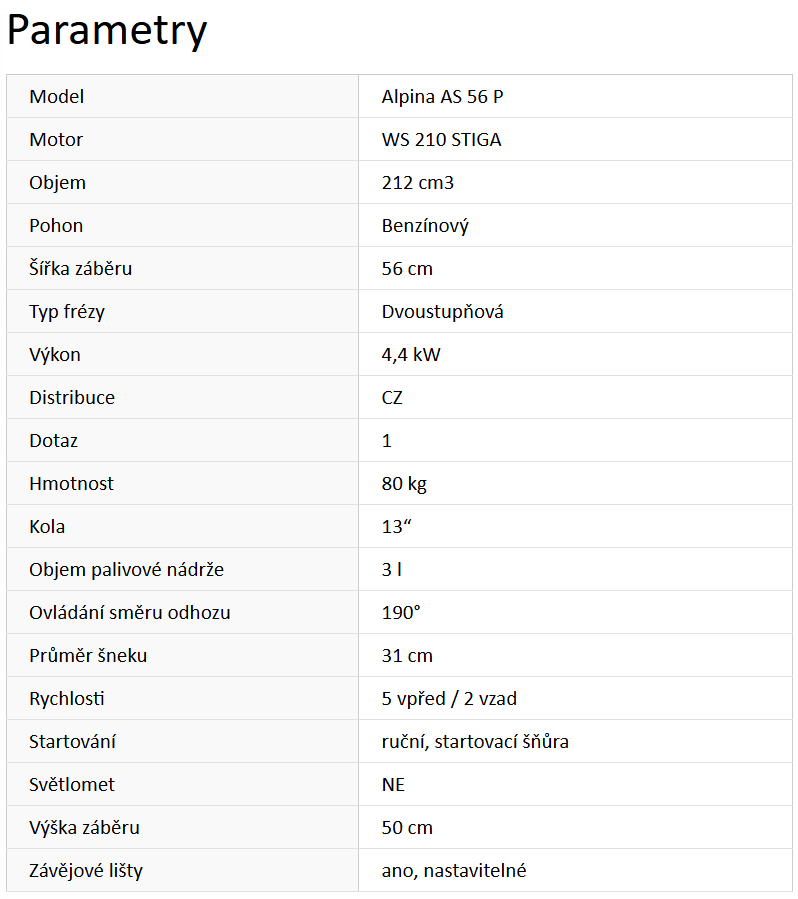 - Všechny sněhové frézy Alpina mají nastavitelné kluzné lišty výhozový komín a ovládací prvky umístěné na držadlech, díky nimž jsou velmi snadno ovladatelné.