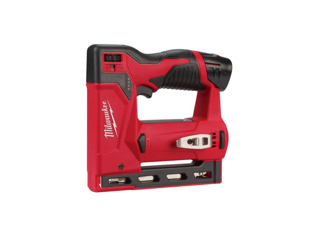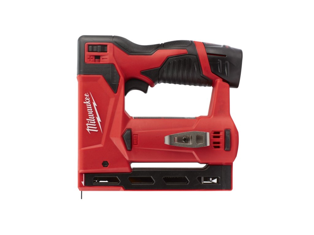 Akumulátorová sponkovačka Milwaukee M12 BST. Výkonná aku sponkovačka do ruky, kompatibilní s akumulátory M12. Nastřeluje standartní spony T11, T50, T140 s šířkou 10,6 mm a délkou 6 mm - 14 mm, zásobník o kapacitě 89 spon.