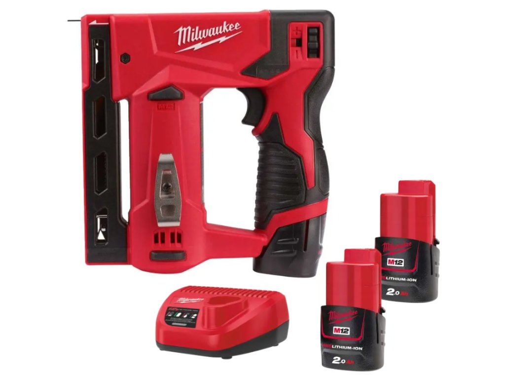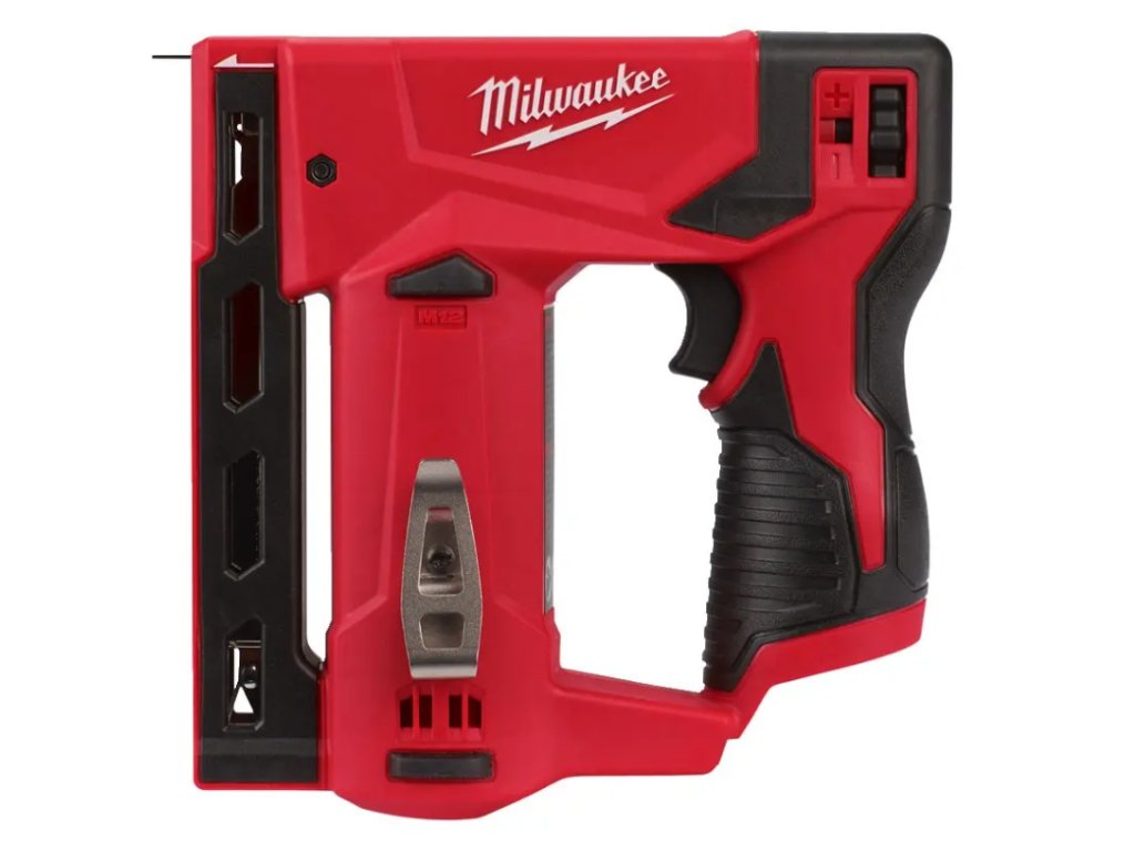 Akumulátorová sponkovačka Milwaukee M12 BST. Výkonná aku sponkovačka do ruky, kompatibilní s akumulátory M12. Nastřeluje standartní spony T11, T50, T140 s šířkou 10,6 mm a délkou 6 mm - 14 mm, zásobník o kapacitě 89 spon. Dodáváno s akumulátorem M12.