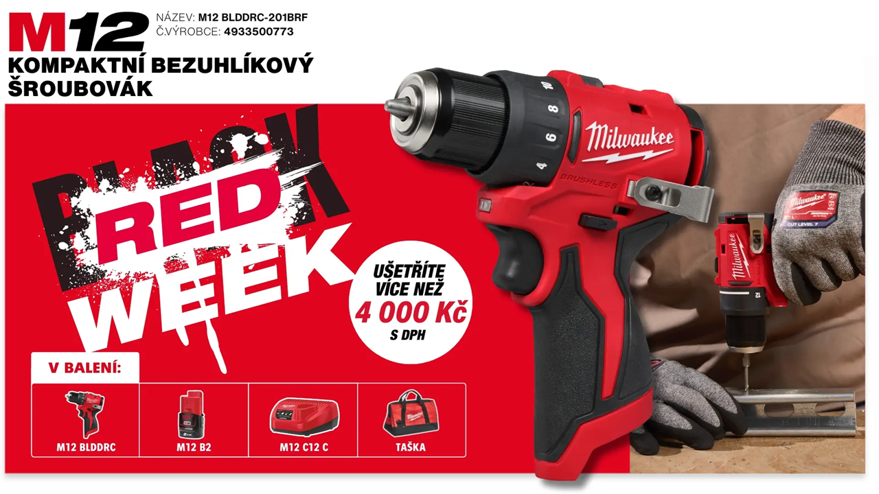 Milwaukee M12™ kompaktní bezuhlíkový šroubovák M12 BLDDRC je profesionální akumulátorový šroubovák navržený pro práci v těžko přístupných a stísněných prostorech. S délkou těla pouhých 137 mm se vyznačuje extrémně kompaktním designem, přičemž stále nabízí vysoký výkon díky bezuhlíkovému motoru POWERSTATE™ a točivému momentu 40 Nm. Šroubovák je vybaven robustním 10mm kovovým sklíčidlem, integrovaným LED osvětlením a inteligentní elektronikou REDLINK™ pro ochranu proti přetížení a zvýšení životnosti. Součástí sady je jeden akumulátory M12 B2 2,0 Ah, rychlonabíječka M12 C12 C a sada je dodávána v tašce Milwaukee.
