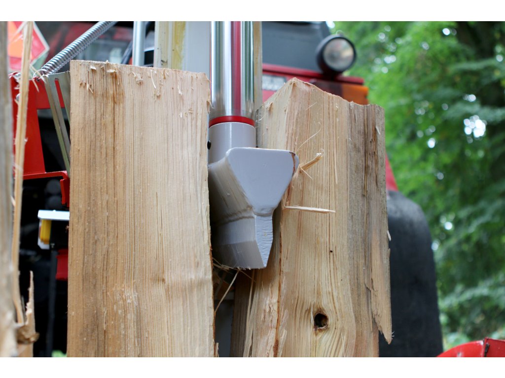 Štípačka je vybavena dvourychlostním štípacím systémem, který umožňuje rychlé štípání menších polen nebo vyšší sílu pro tvrdé a sukovité dřevo. Nízká základna umožňuje polena jednoduše dokutálet ke stroji bez nutnosti jejich zvedání, zatímco boční rameno spojené s pístem pomáhá postavit těžké špalky do pracovní polohy.