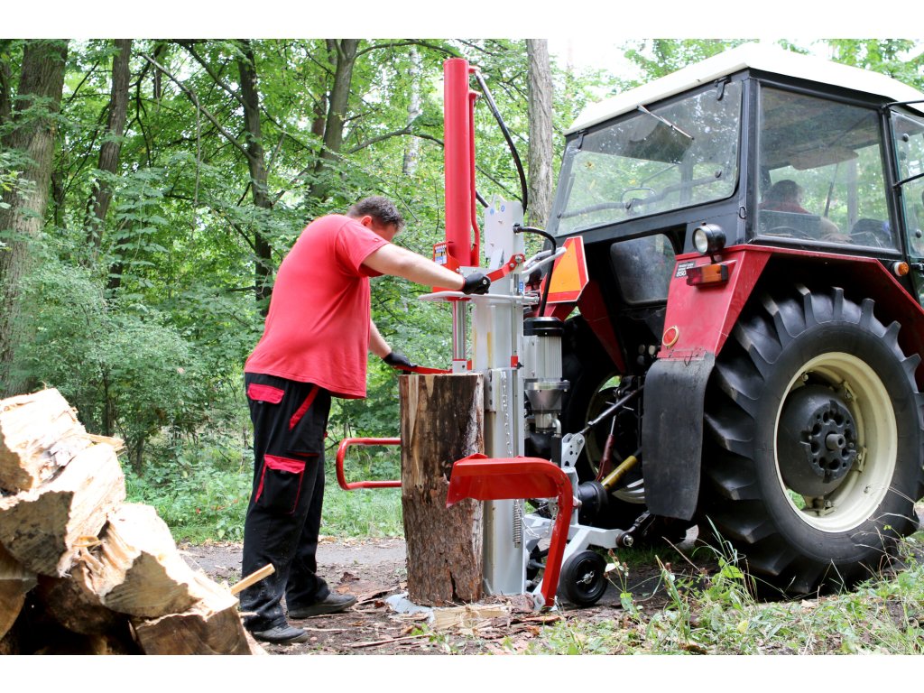 Stroj pohání silný třífázový elektromotor 400 V o výkonu 5 100 W, který vyvine štípací tlak až 22 tun. Velkou výhodou je možnost pohonu také kardanovým hřídelem traktoru (540 ot./min) a přepravy pomocí tříbodového závěsu, takže můžete štípat dřevo přímo na místě těžby.