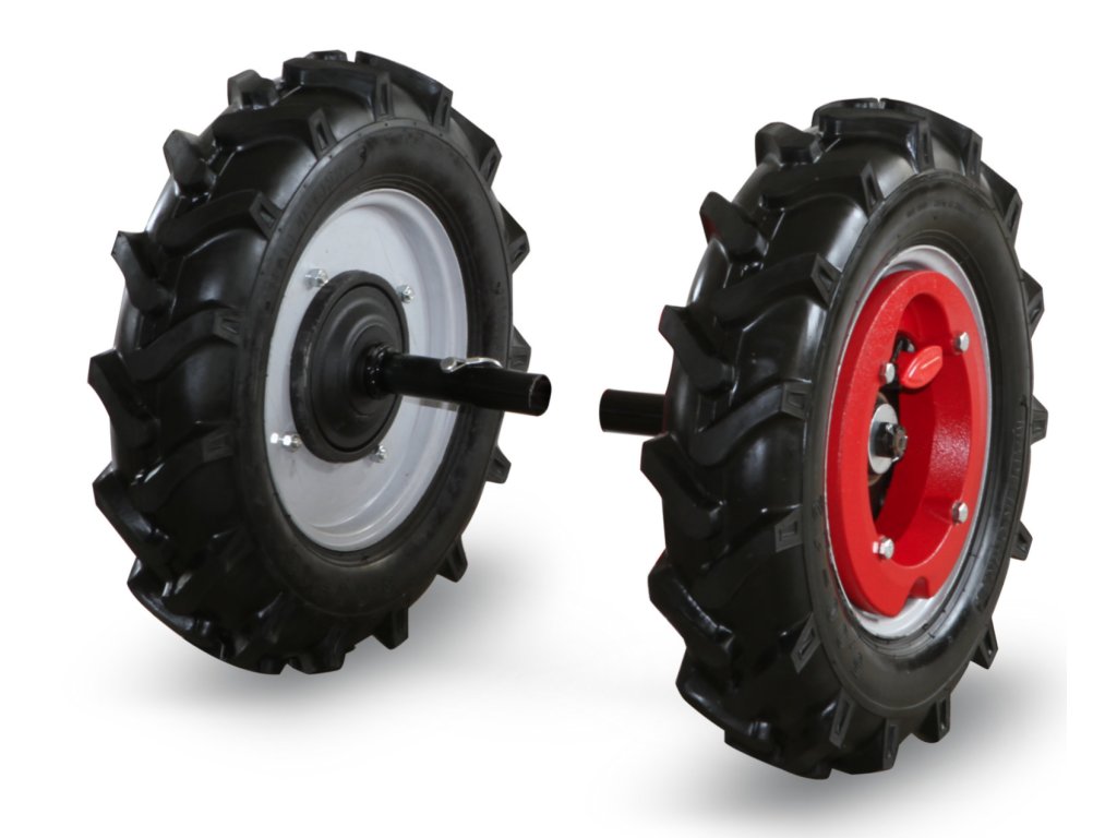 Dvanáctipalcová kola s dezénem VARI FARM TRACK zajišťují spolehlivý záběr na poli, zahradě i v měkkém terénu. Pro ještě lepší trakci je možné do ráfků doplnit vnitřní závaží nebo použít orebné návleky či sněhové řetězy.