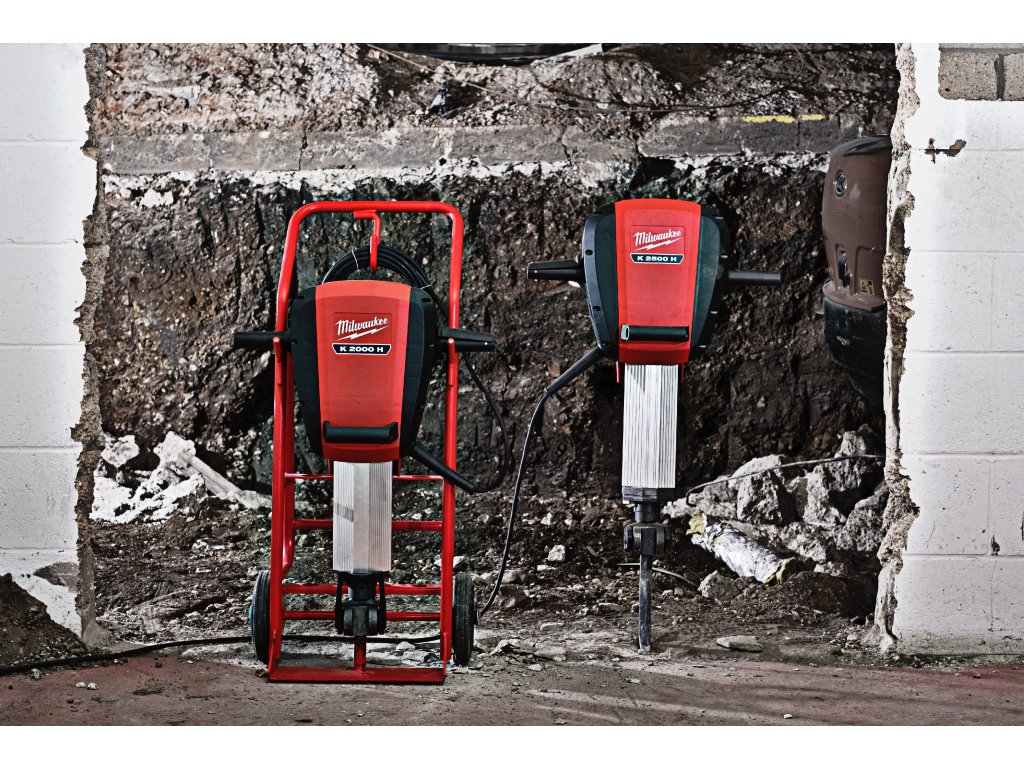 - Transportní vozík se 4 místy pro sekáče a závěs kabelu usnadňuje přepravu kladiva po pracovišti