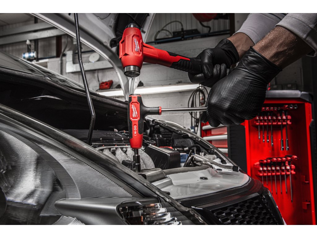 - T-STRIKE™ poskytuje úderovou hlavici, která chrání samotný nástroj a umožňuje lepší přístup k obroušeným nebo zrezivělým šroubům. Celokovové jádro zajišťuje mimořádnou odolnost.