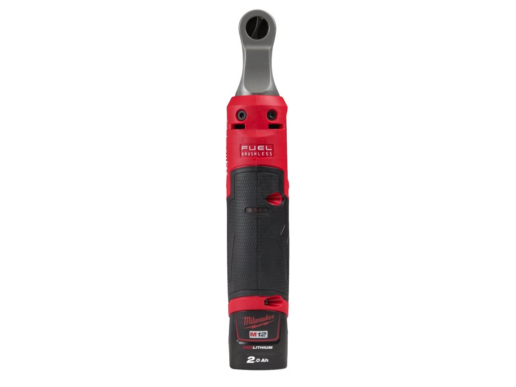 M12™ FUEL vysokorychlostní aku ráčna 3/8" s kroutícím momentem 47 Nm a 450 ot/min. poskytují profesionálním uživatelům rychlejší provádění práce a vyšší produktivitu. Hlava nářadí s nízkým profilem s výškou 19 mm umožňuje uživatelům lepší přístup do omezených prostorů. Špičková technologie FUEL™, zesílený mechanizmus a pouzdro třmenu z lité oceli zajišťuje delší životnost pro profesionáli. Kovový spínač umožňující nastavení otáček zajišťuje vynikající ovládání nástroje. Pogumovaní odolává většině korozivních materiálů a poskytuje zvýšený komfort. LED osvětlení pracoviště. Upevnění a odstranění 210 šroubů M8 na jedno nabití akumulátoru M12 B2. Indikátor energie zobrazuje stav nabití akumulátoru. Flexibilní akumulátorový systém - provoz s každým akumulátorem Milwaukee® M12™