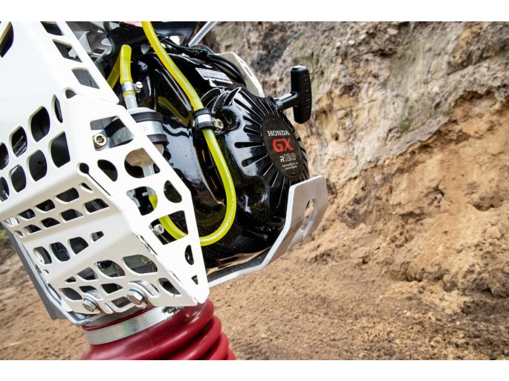S tímto strojem dosáhnete rovnoměrného hutnění a výrazně zlepšíte stabilitu podloží, což je zásadní pro dlouhodobou životnost jakékoliv stavby či úpravy terénu. Spolehlivý motor Honda GXR 120 poskytuje dostatečný výkon pro efektivní hutnění a zároveň je úsporný a splňuje nejnovější emisní normy Stage V.