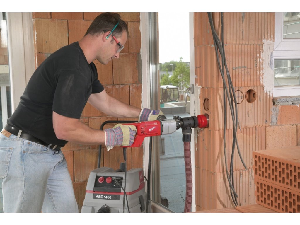 2-rychlostní diamantová vrtačka MILWAUKEE DD 2-160 XE Výkonný robustní motor dodává vysoký kroutící moment o stálé hodnotě. Dvojitá ochrana prostřednictvím vzájemně spojené mechanické a elektronické spojky na ochranu uživatele i nástroje. Robustní konstrukce s kovovou převodovkou. Bezpečná manipulace díky dlouhé boční rukojeti AVS a zadní rukojeti ve tvaru „D”. Dvojrychlostní převodovka. Adaptér M16 FIXTEC™ pro rychlou výměnu vrtací korunky. Funkce měkké řezání - při aktivaci umožňuje vrtací korunce řezat rychleji a snadněji. Možnost měkkého startu pomocí akceleračního spínače umožňuje přesné a řízené vrtání. FIXTEC™ Cleanline rotor (dodává se zvlášt) nejlepší řešení pro odsávání prachu. 4 m kabel. Standardní vybavení: rychlovýměnný adapter, M16 diamantová korunka, SDS plus pilotní vrták (8 x 140 mm).