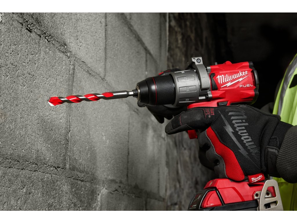 - Červený žlábek umožňuje snadnou identifikaci vrtáku uživatelem v kufru na nářadí.