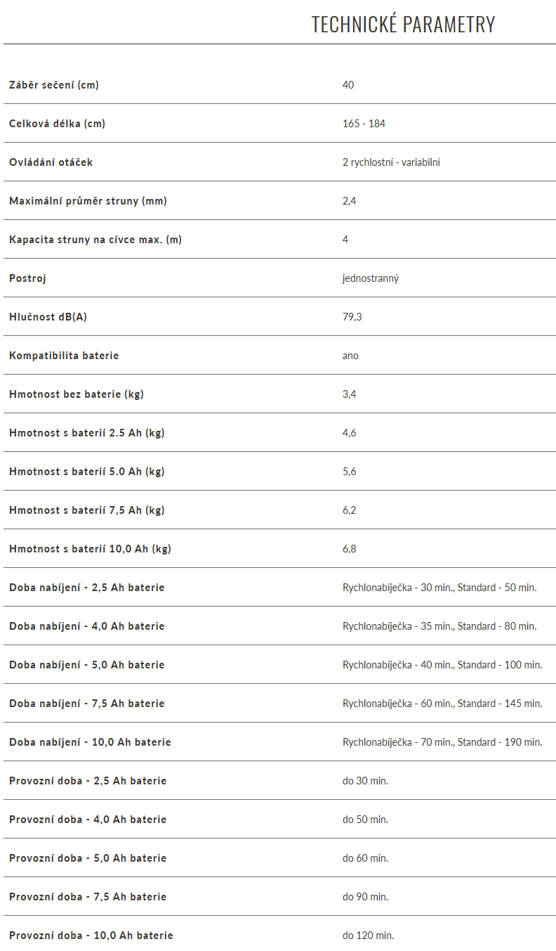 | Kategorie: | AKU křovinořezy a vyžínače |