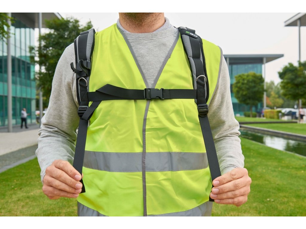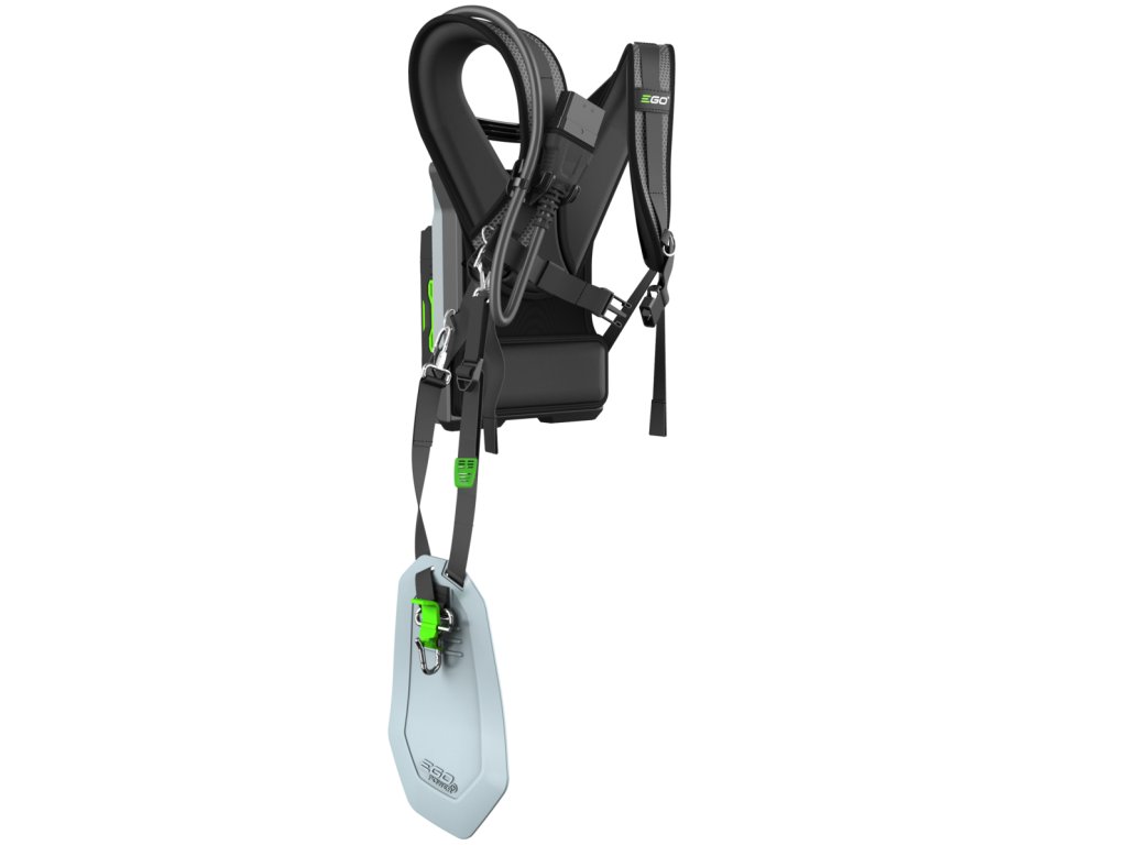 Je všeobecně známo, že čím větší baterie, tím větší výkon, delší pracovní doba, ale bohužel i větší hmotnost baterie. Na druhou stranu zase čím lehčí je stroj, tím komfortnější a snadnější je jeho obsluha. Proto existuje pohodlnější způsob maximálního využití energie i těch největších baterií EGO Power+pomocí ergonomického nosného zádového nosiče baterií a komfortního ergonomického postroje. Postroj je opatřen bohatým polstrováním a možností nastavení popruhů optimálně pro konkrétní postavu uživatele. Pro případ možnosti zavěšení křovinořezu je nutné dokoupit závěs pro křovinořezy AHP1300.