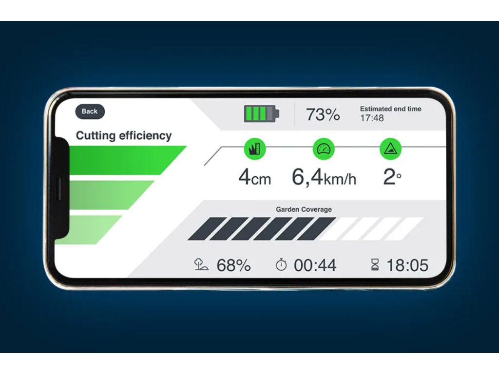 STIGA Swift 372e je plně kompatibilní s mobilní aplikací STIGA.GO, která poskytuje přehled o stavu baterií, provozních datech, doporučeních pro sečení i možnostech inteligentního plánování nabíjení.
