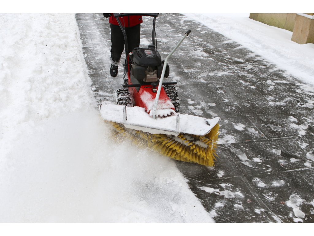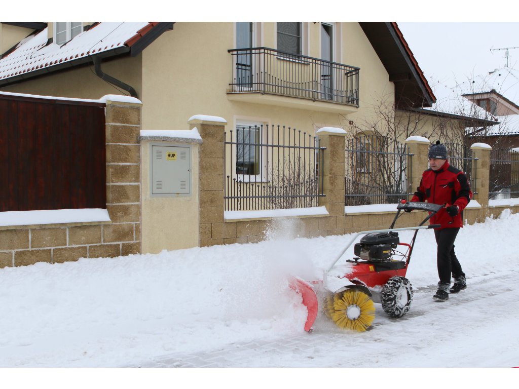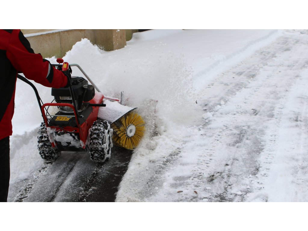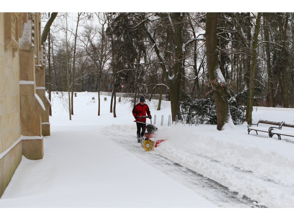 Zametací válce se šíří záběru 100 cm a spirálovým uspořádáním štětin zajišťují vysokou účinnost zametání. Stroj je postaven na inovovaném šasi s řadou praktických detailů – například plynule nastavitelným přítlakem kartáče pomocí vodicího kola, snadnou výměnou zametacích válců nebo širším rozchodem kol, který zlepšuje stabilitu a umožňuje použití sněhových řetězů při zimním provozu.