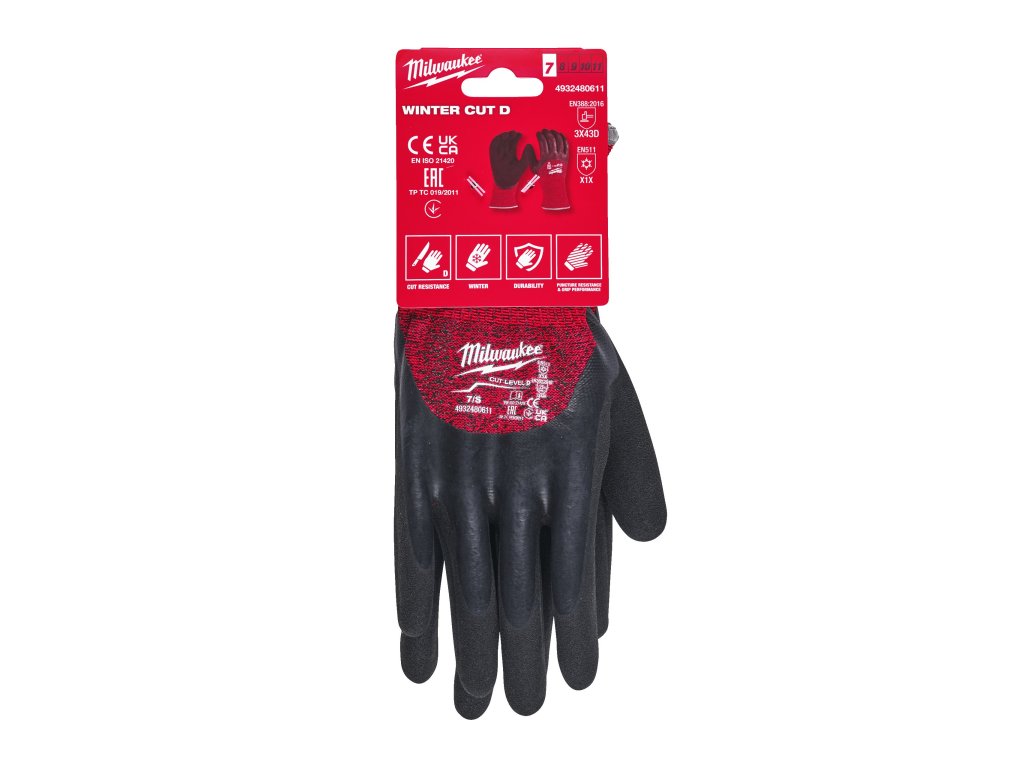 - Evropská certifikace pro ochranu proti proříznutí a chladu: EN ISO 21420, EN388:2016 (3X43D), EN511 (X1X), UKCA, EAC, Ukrajina.